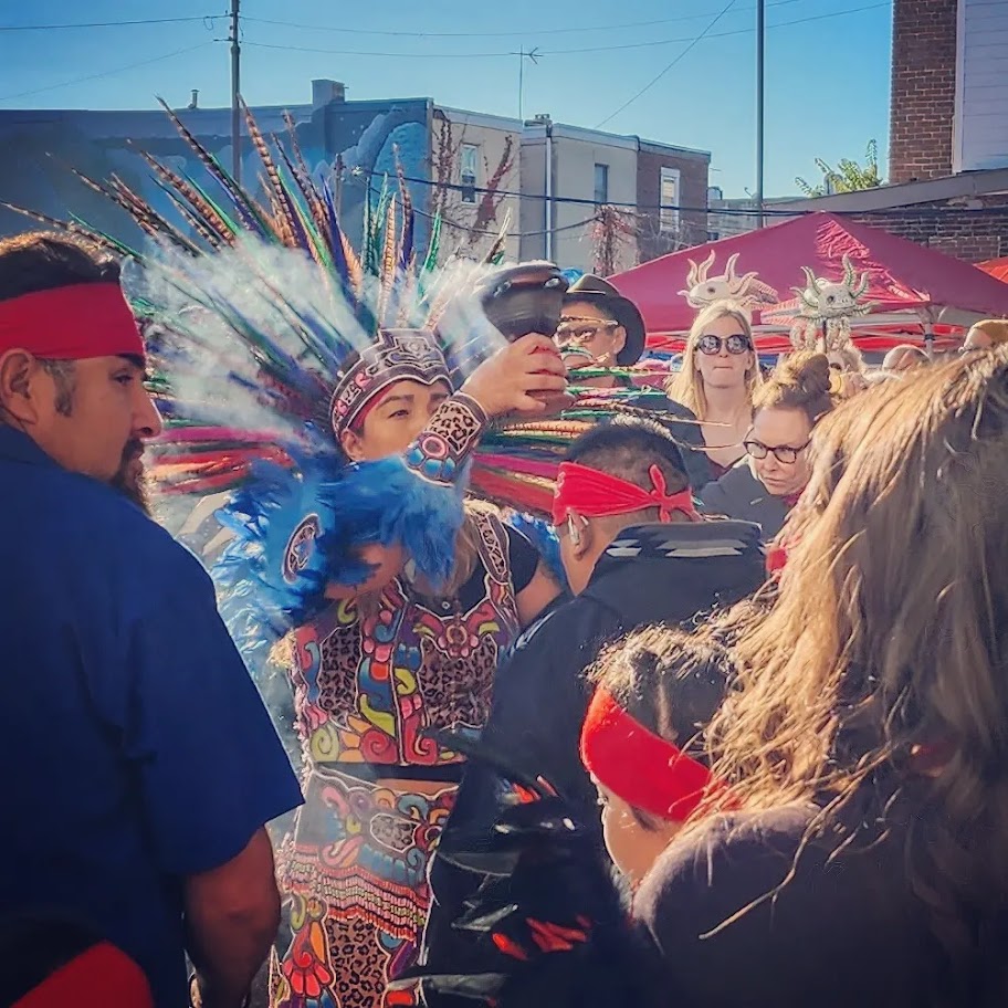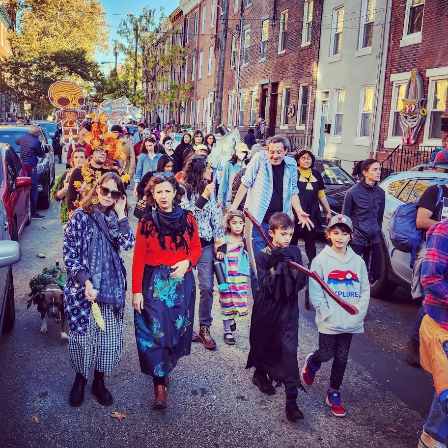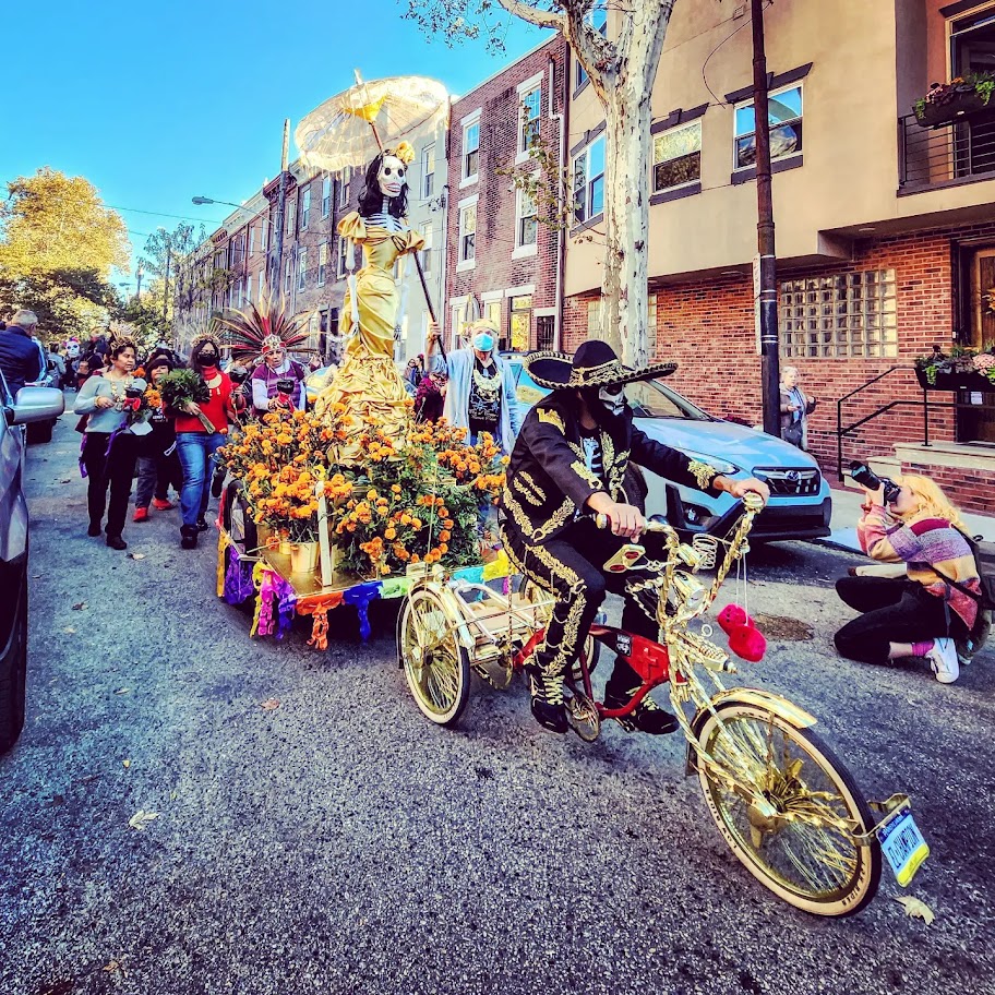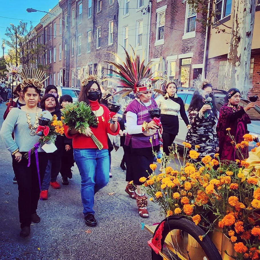 Any day you can walk out your door and unexpectedly find yourself in the midst of a sacred blessing and a parade, is a magical day. This is the annual Day of the Dead celebration. If you pay attention, you will know this day is approaching when the vendors’ carts are over-flowing with golden marigolds on Ninth St. (aka the “Italian” market). If you look closer, you will find alters full of flowers and offerings to the dearly departed dotting the neighborhood.