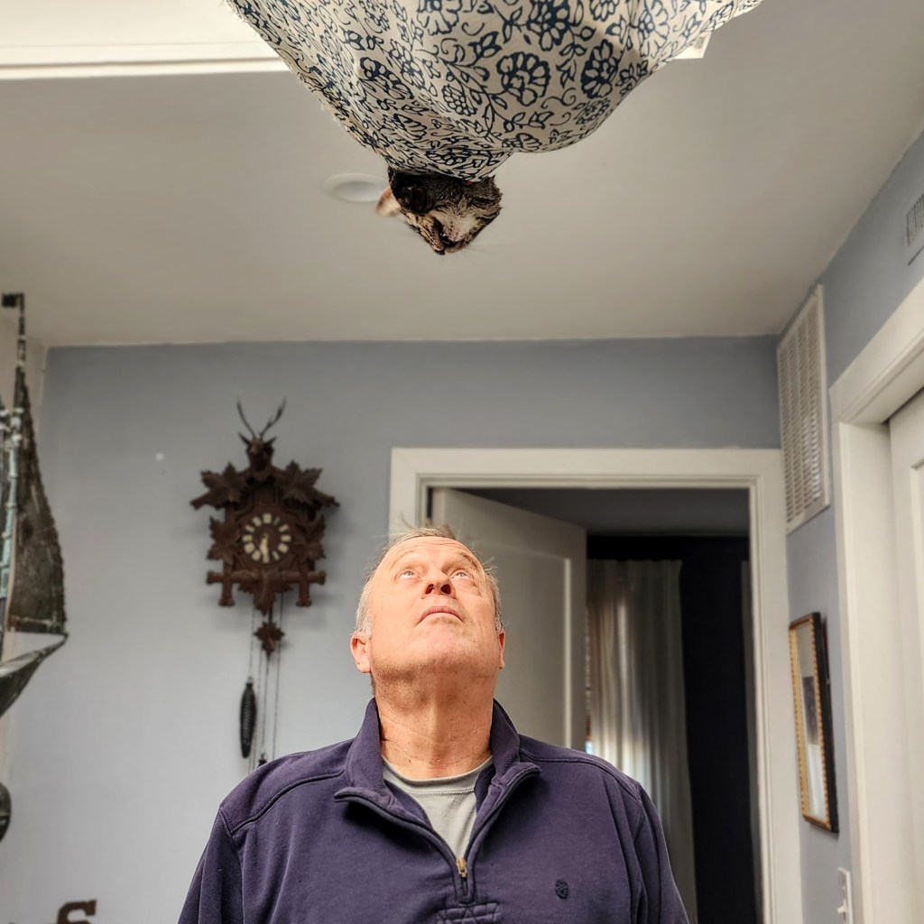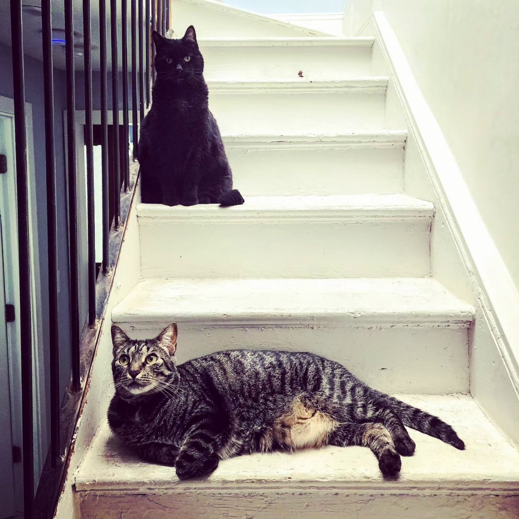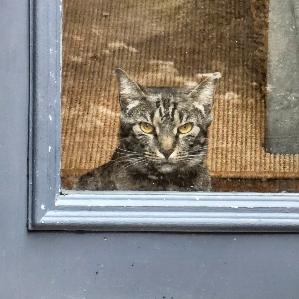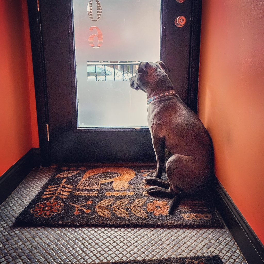 Josephine and Piggy, aka the Pigmonster, basically stay as close as possible to the kitchen at all times. Pig’s person is not me. And if his person isn’t home, he will sit and wait by the front door.