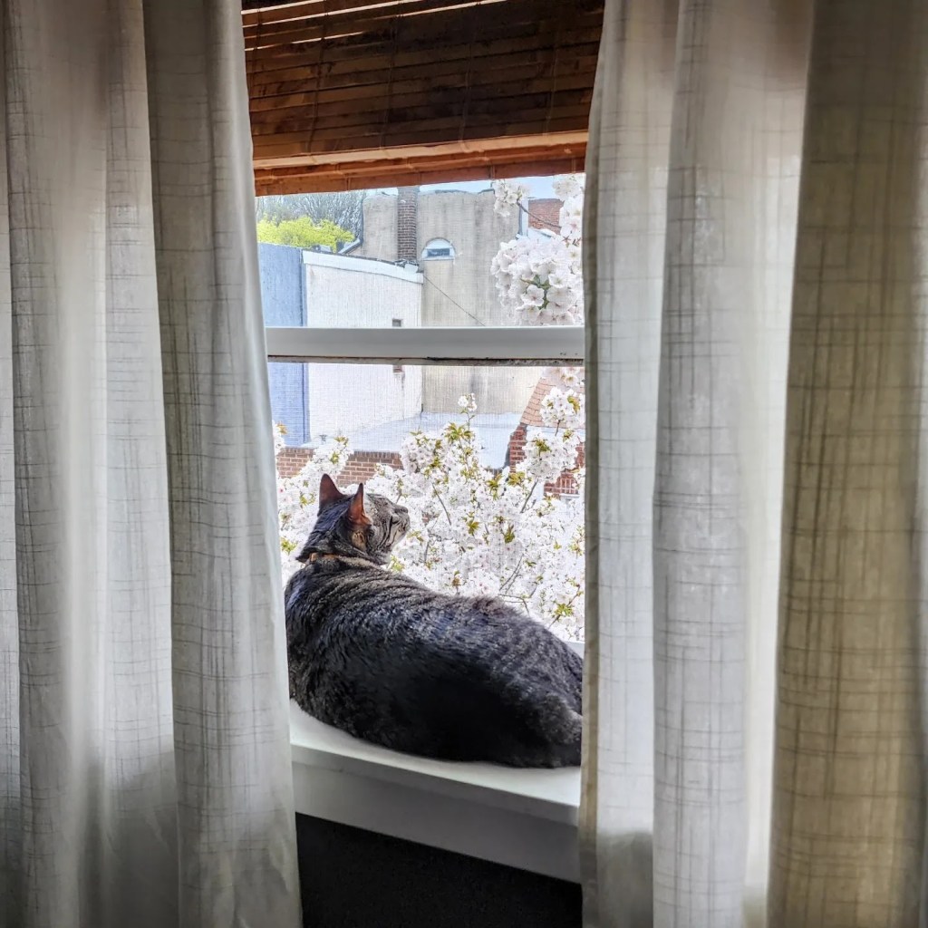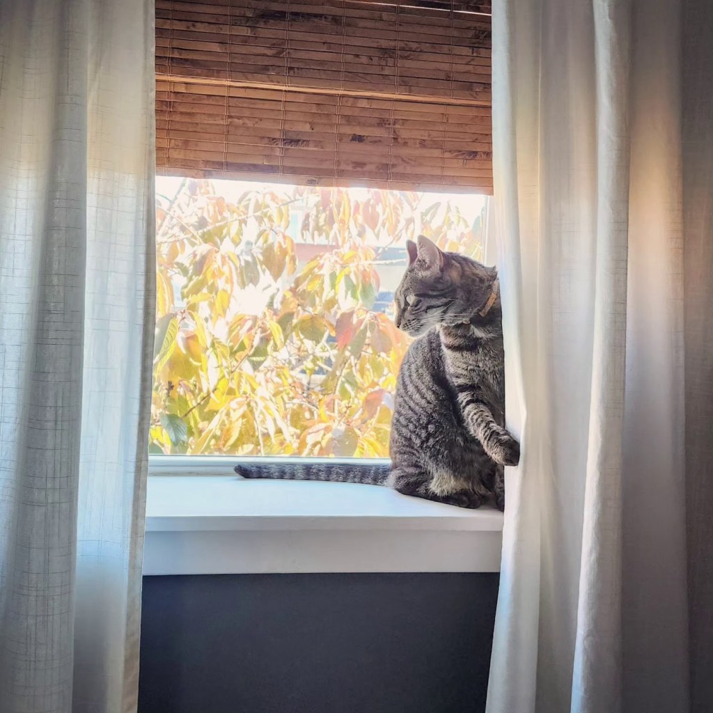 Our large front tree creates the feeling of living in a treehouse. From our windows we watch the seasons change. The bees buzz and the birds chirp. Hazelnut loves all the seasons.