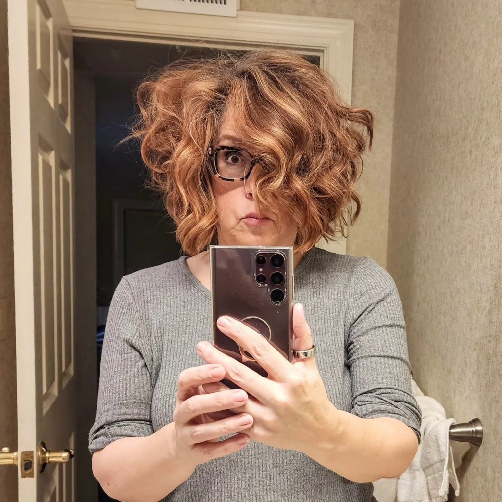 Selfies- Aging is difficult. I have one of those milestone birthdays coming up. I am attempting to be less critical of myself, because the truth is, this is what growing older looks like. I got cataract surgery over the summer, and I didn’t like how I felt once my oversized glasses weren’t hiding things. Of course, now I am wearing an oversized pair of readers. My crutch.