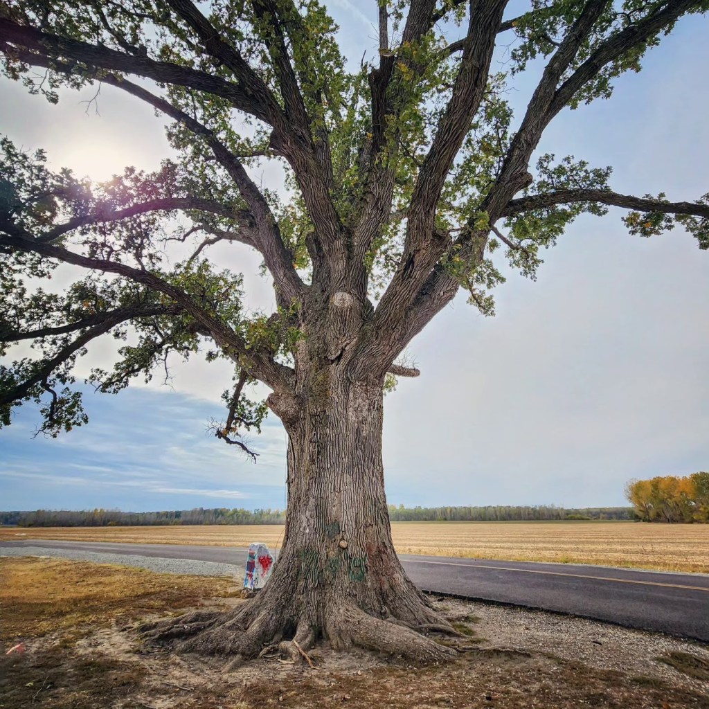 During a research trip I was taken to visit the almost 400-year old McBaine Burr Oak tree. It lives outside of Columbia about a half-mile from the Missouri River. Some of my ancestral roots also reside nearby. It’s an interesting connection to ponder.