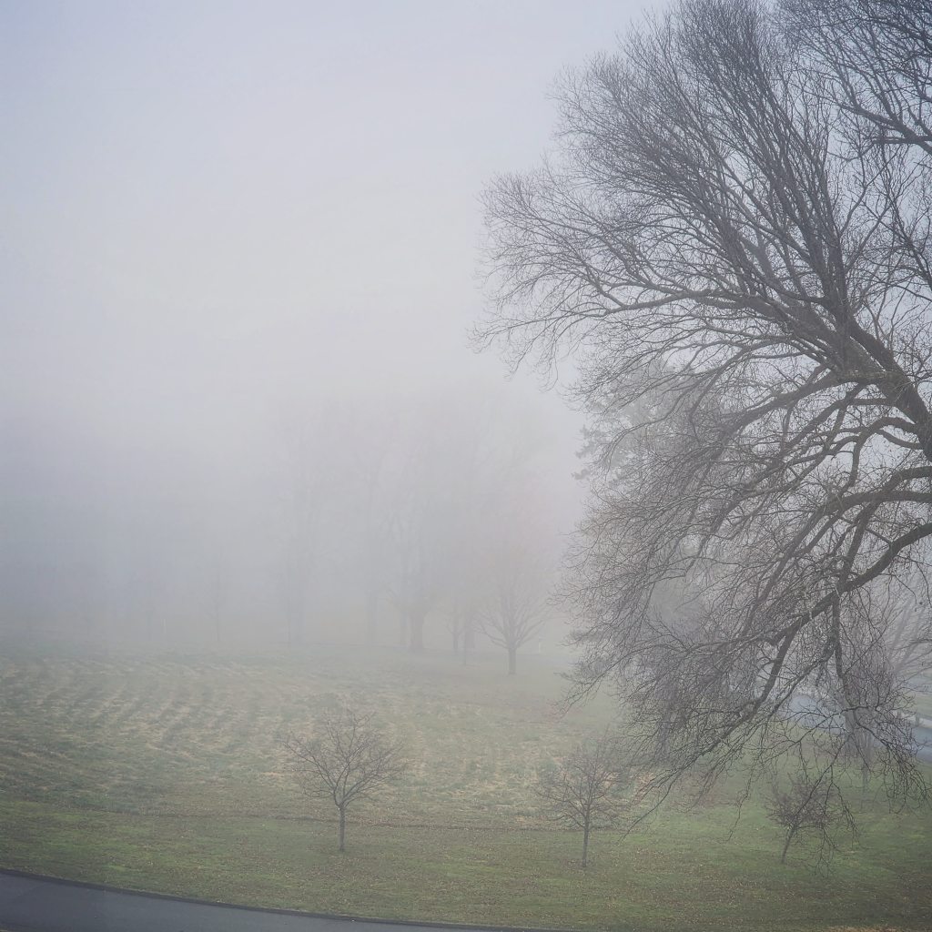 While attending a writing retreat at the Kripalu Center in Massachusetts…day one, two, and three the fog rolled in: on the final morning the crows arrived. I wish I had recorded them. This view out my window felt reflective of my writing practice and the feeling of being unplugged.